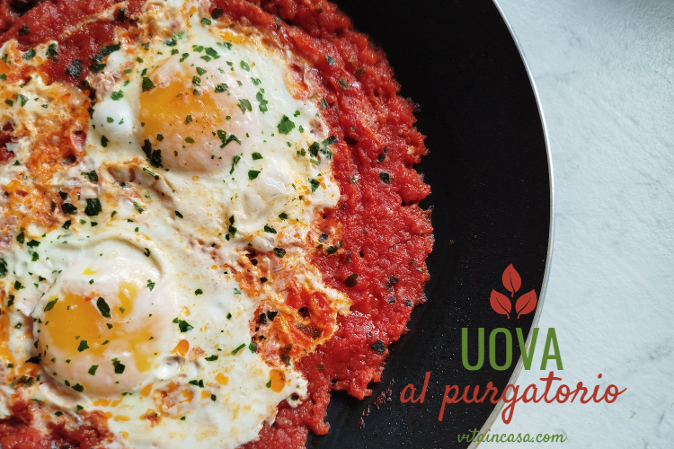 Un esempio lo possiamo trovare proprio nella ricetta delle uova al purgatorio. Semplici uova che diventano speciali cotte in un intingolo di pomodoro dentro il quale il tuorlo, cremoso, si fonde appena lo rompi con la forchetta. Un piatto estremamente facile da fare, poco costoso, e pure piuttosto rapido: mentre cuoce, lascia giusto il tempo di apparecchiare la tavola e tagliare qualche fetta di pane (per la scarpetta, immancabile quando c’è un bel sughetto!).