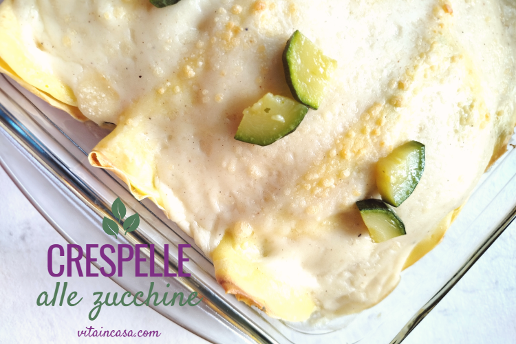 - Cottura: passare nel forno già caldo a 180°C per 25 minuti, o comunque fino a che la superficie non è leggermente gratinata, ma non troppo colorita. Servire le crespelle alle zucchine calde.