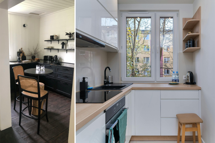 Chi ha la possibilità di avere una zona pranzo in soggiorno, talvolta rinuncia al tavolo in cucina e sfrutta lo spazio per una doppia fila di pensili: conviene soprattutto a chi vuole un ampio piano di lavoro, per tenere a portata di mano vari piccoli elettrodomestici pronti all’uso, e contemporaneamente avere anche molti armadietti ad uso dispensa. La soluzione intermedia è rinunciare al tavolo da pranzo in cucina, ma inserire comunque un tavolo piccolo, tipo da bistrot, ad uso colazione o snack. Très chic!